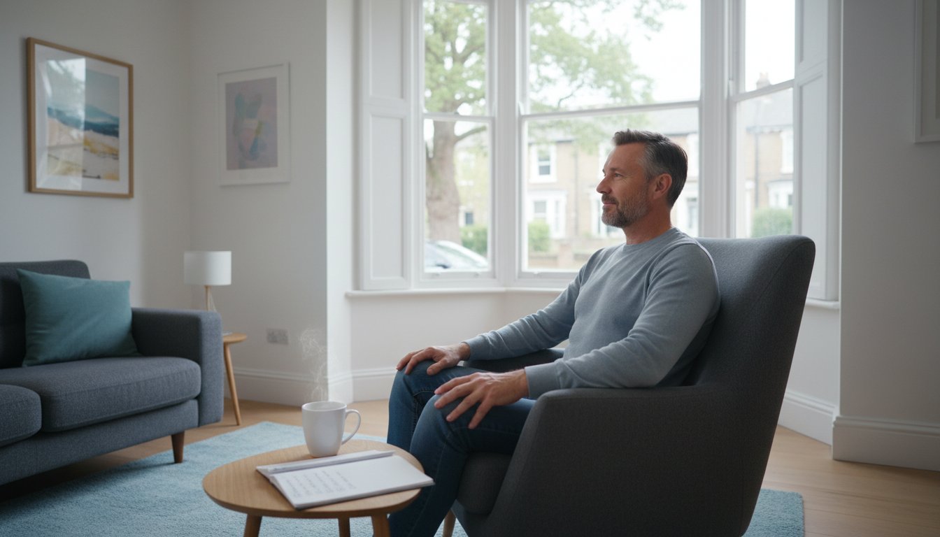 When anxiety peaks, such as in the waiting room, simple physiological techniques can provide immediate relief. The 4-7-8 breathing technique is a clinically recognised method for calming the nervous system. Here’s how to do it: